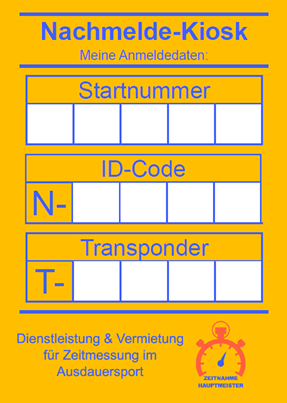 Wer ohne sein Handy zum Wettkampf anreist, nutzt das vor Ort bereitstehende Kiosk-Notebook und notiert sich die – sehr wenigen – für die Abholung der Startunterlagen erforderlichen Daten in diesem Papierformular (liegt am Kiosk-Notebook aus).